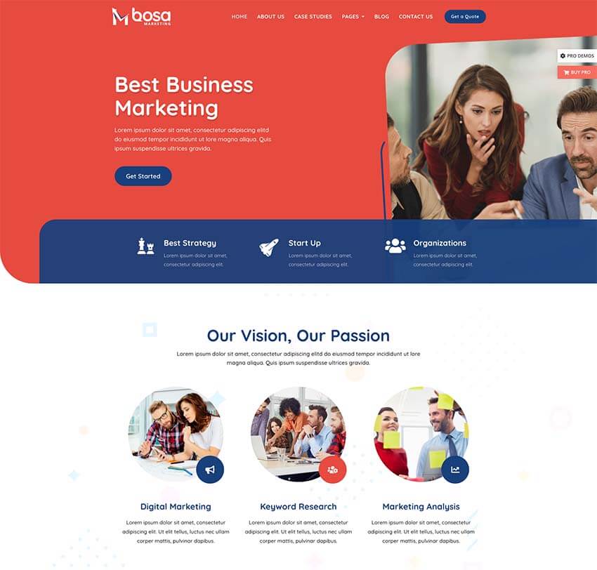 Bosa Marketing is beautiful, fast, lightweight, responsive, extremely customizable theme that you can use as a foundation to build versatile sites such as marketing companies, online marketing business, advertise, digital marketplace, marketing agency, ebooks, tutorials, corporate agency, image ads advertisement or video advertising, affiliate marketing, startups, consultancy corporations, web-marketing, accountants, brokers, image ads advertisement or video advertising, ad networks, creative agencies, consults, wealth advisors, resume, blog, news, portfolio and preferably ideal for any type of marketing sites.