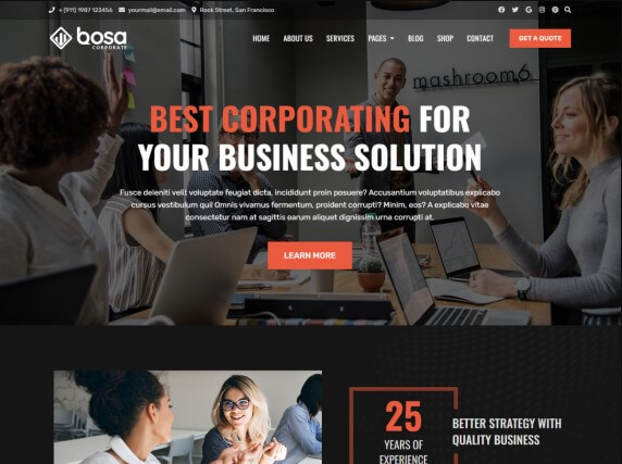 Bosa Marketing is built with SEO, speed, and usability in mind with the multiple Header & Footer layouts, predesigned starter sites includes awesome Home & Inner Pages that is incredibly customizable and powerful enough to take a stand among the crowd.