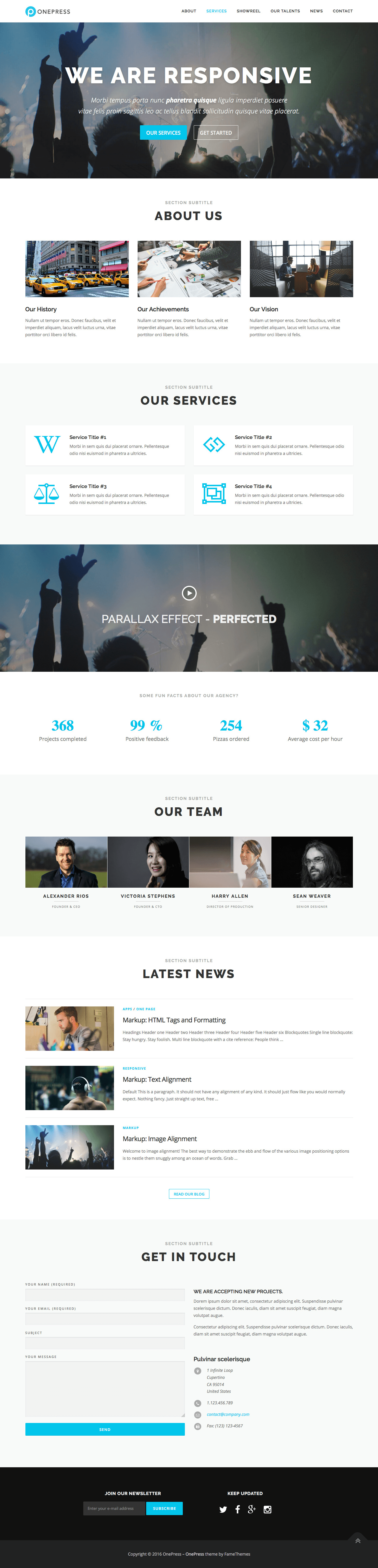 OnePress By FameThemes comes with an e-commerce theme that can be used for creating a store, a customer registration area, and modules, blog. One could even have additional modules such as an online shop manager and a shopping cart. All the same, this theme incorporates the latest in technology so that it makes using it easy enough that a small child could manage it. The theme integrates Google Maps, so you can point your customers in the right direction if they want to find out more information about your product or service.