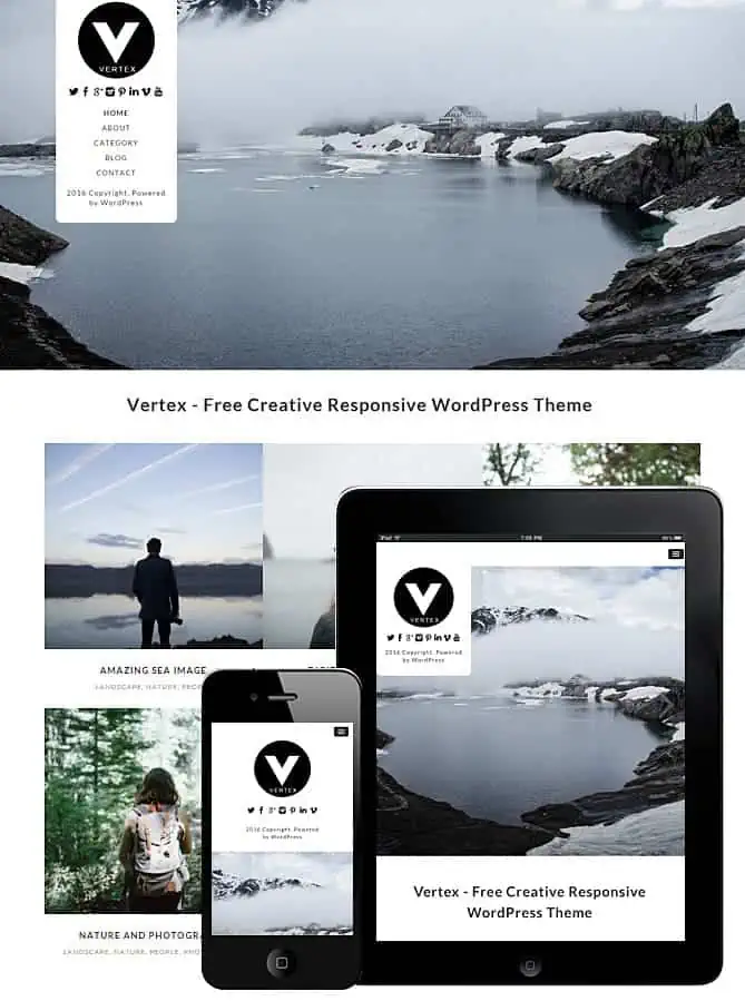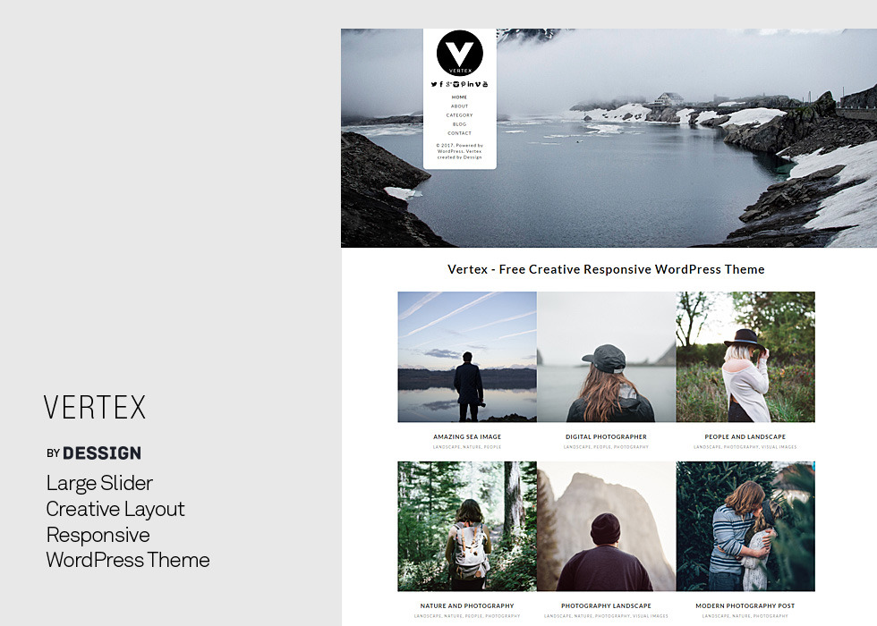 Vertex is a responsive, beautiful and simple theme mostly for portfolio websites or photography and blog sites. With clean and modern design and aesthetic feel,showcase your content in a contemporary timeless style. Make your images stand out and focus on your content.